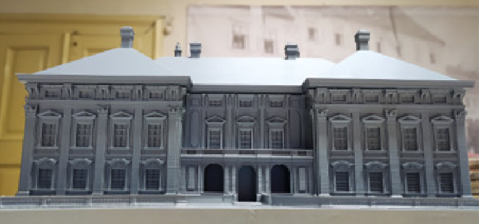 Jde o třetí model z 3D tiskárny, který veřejnosti prezentuje stavební vývoj prostoru, kde stojí současný zámek. První dva vznikly na přelomu let 2015 a 2016 a přibližovaly nejstarší stavební vývoj – opevněnou komendu Řádu německých rytířů a budovu renezančního zámku vybudovaného již šlechtickým rodem Kouniců spolu s nedaleko stojícím farním kostelem sv. Jakuba a P. Marie.